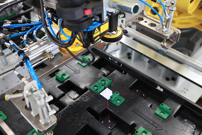 机器人结合视觉系统实现对无序的物料位置智能判断识别,自动定位抓取,效率高,柔性强,有利于实现生产线自动化和智能化。